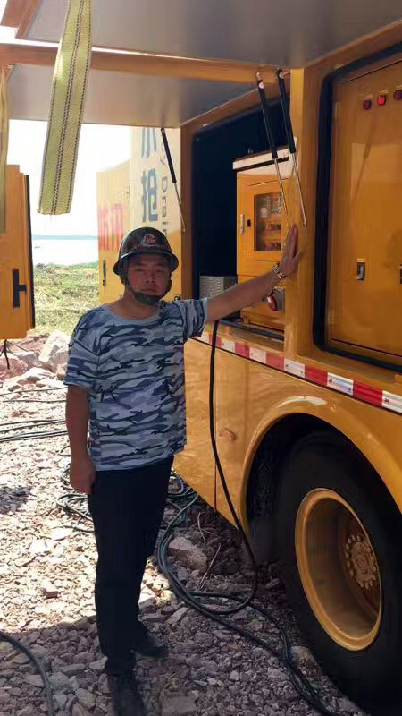手摸著我們亞太自己生產(chǎn)的防洪搶險泵車,心里踏實!只是,戴了帽子就不帥了吧!