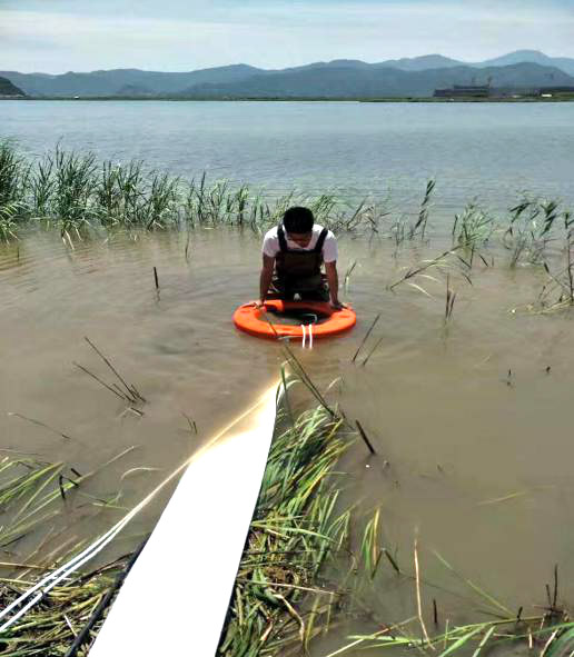 與美景交相輝映的,是漂浮在水面的那一抹抹橙色!對,與之相連的是就是我們的防洪搶險泵!