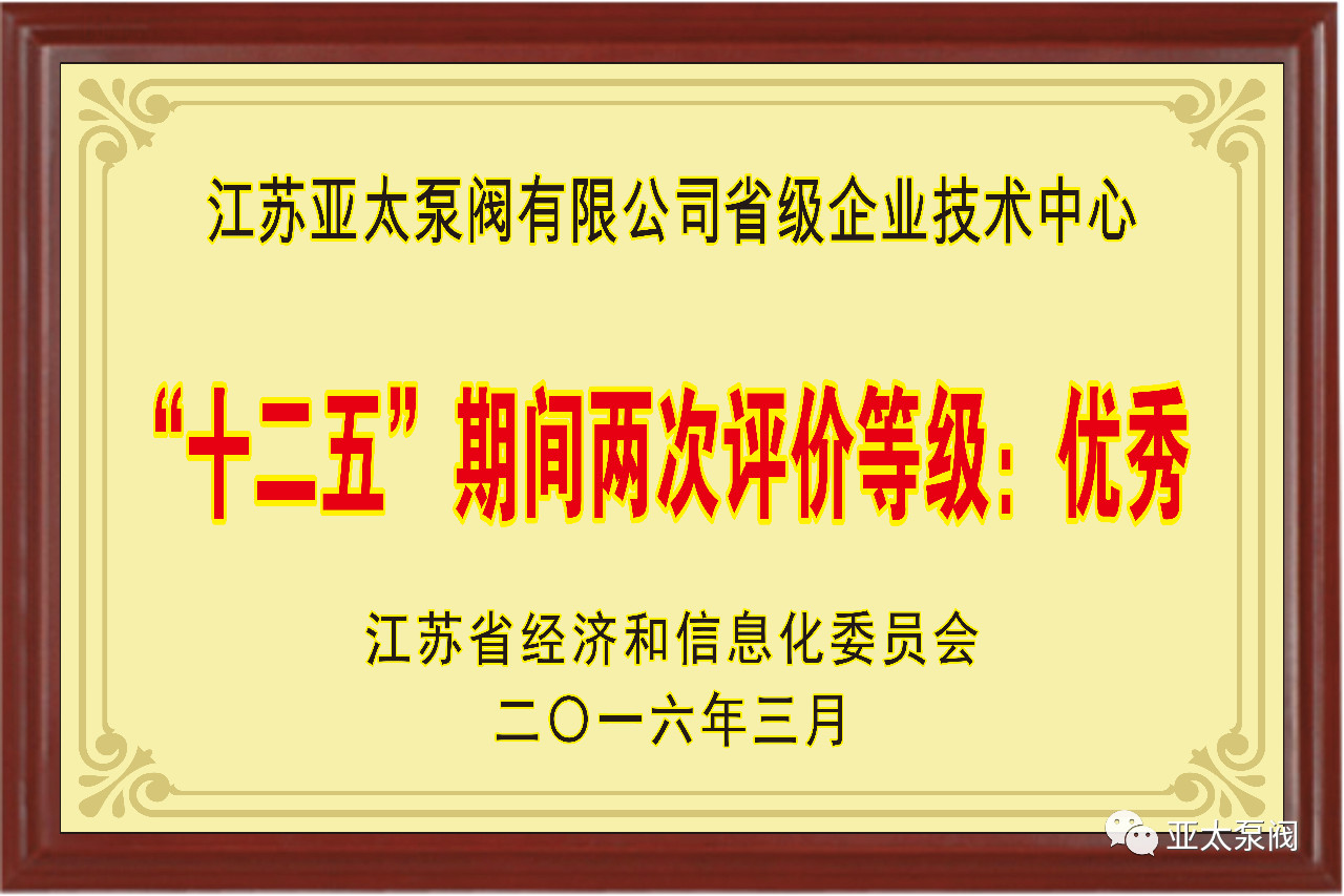 近日,省發(fā)改委正式發(fā)文,同意建設(shè)2018年度省級(jí)工程研究中心,亞太泵閥有限公司申報(bào)的省級(jí)創(chuàng)新平臺(tái)江蘇省特大型潛水電泵及泵站系統(tǒng)工程研究中心成功獲批,成為我省水泵行業(yè)唯 一入選企業(yè)。